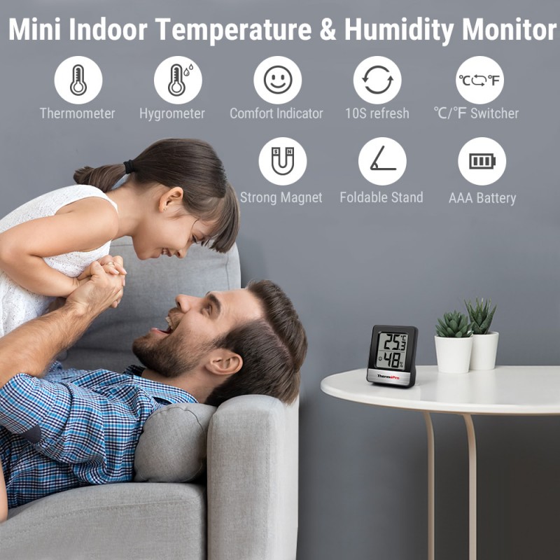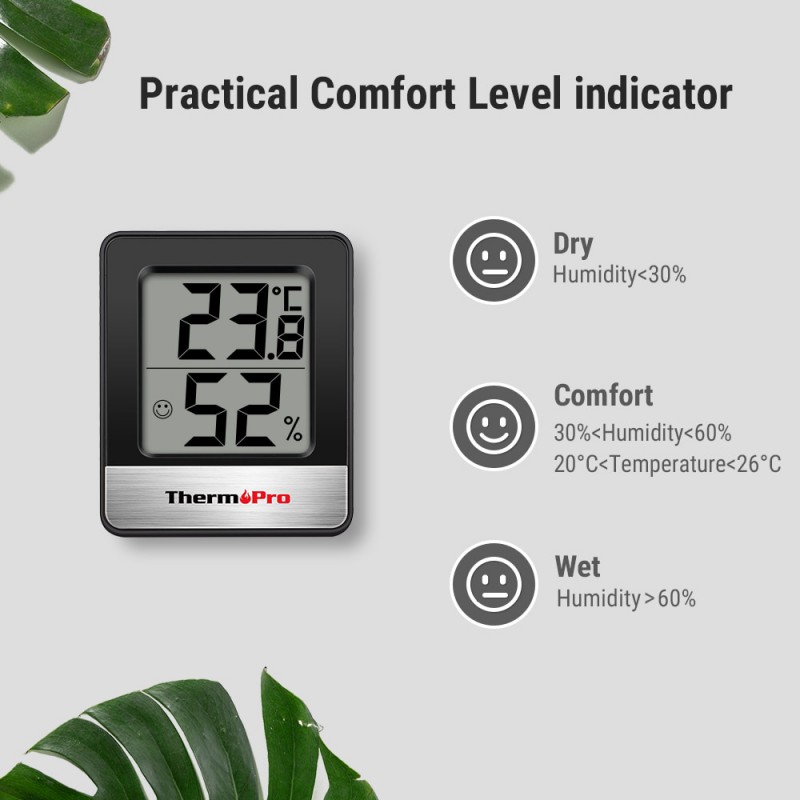 TP49 to mini termometr pokojowy, a monitor wilgotności z wyjątkowo czułym czujnikiem wilgotności szybko poinformuje cię o poziom komfortu (suchy, wygodny, mokry) w pomieszczeniu w oparciu o wilgotność.