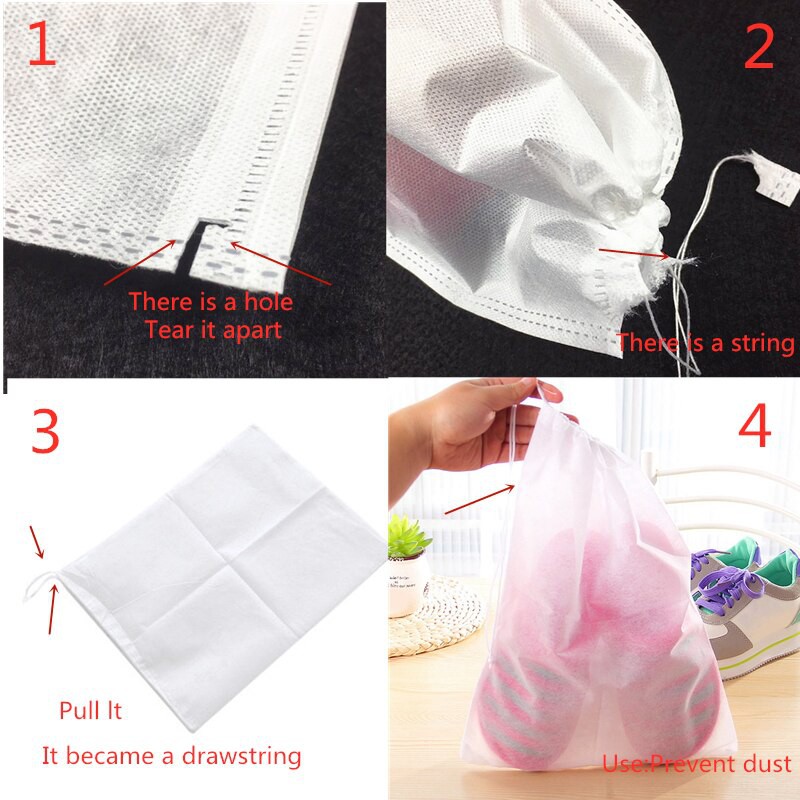 Ten przedmiot jest dobrze wykonany z najwyższej jakości włókniny, aby był odporny na kurz i trwałe użytkowanie. Te torby na buty są dobrze oddychające i przyjazne dla środowiska. Chronią twoje kochane buty przed zakurzeniem w szafie lub w torby bagażowe. Dzięki sznurkowi jest wygodny do otwierania i zamykania oraz łatwy do przenoszenia.