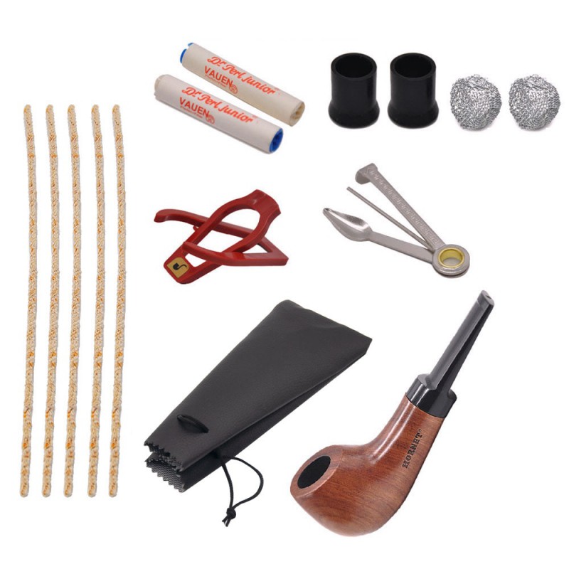 1 drewniana fajka + 5 czyścik do rur + 1 rura nóż + 2 metalowy ekran + 2 ustniki + 1 stojak na fajkę + 1 rura torba