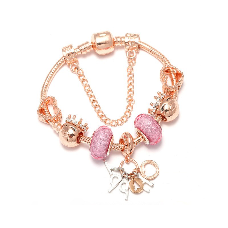 Boosbiy luksusowa marka kobiety bransoletka unikalne różowe złoto kryształ Charm bransoletka dla kobiet DIY bransoletka z korali