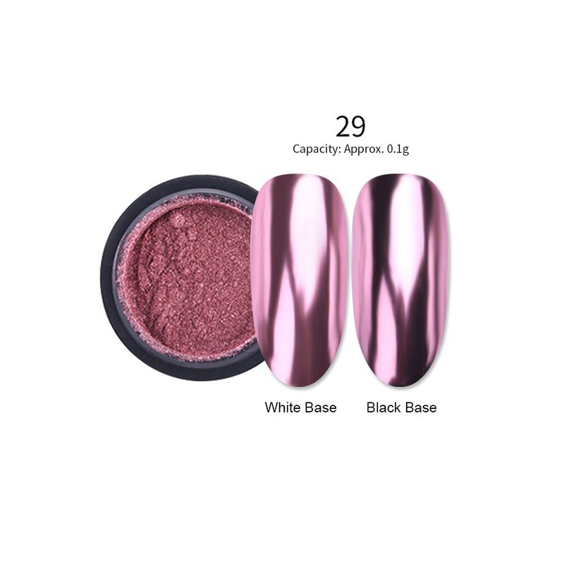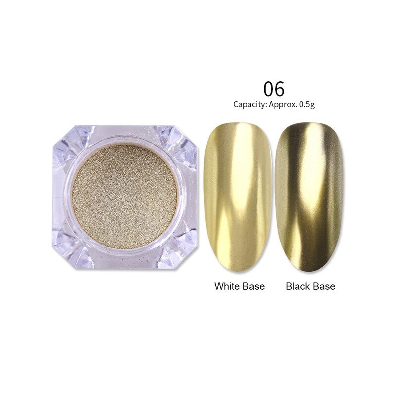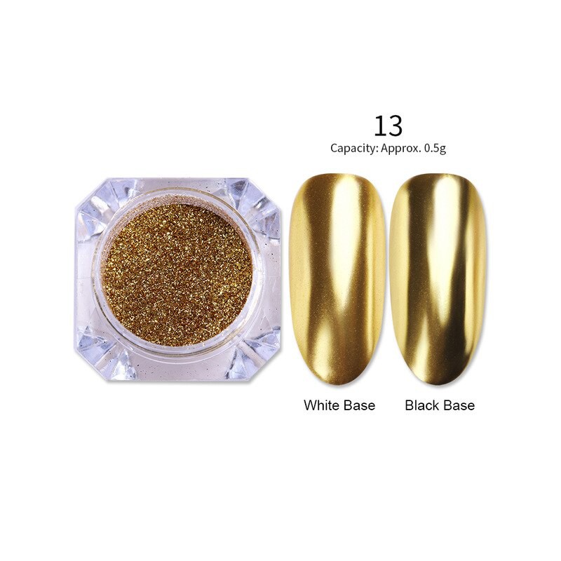 Sposób użycia: 1. Przygotuj paznokcie za pomocą żel podkładowy utwardzany uv, lakier żelowy uv. 2. Zastosuj bez przetarć UV warstwa wierzchnia, utwardz ją pod lampą UV lub lampa LED, dopóki nie jest całkowicie sucha. 3. Użyj pędzelek do cieniowania powiek, aby wybrać proszek i wypoleruj go na paznokciach 4. Powtórz krok 2 i 3, aż będziesz zadowolony z efektu. 5. Usuń go za pomocą UV warstwa wierzchnia, i leczyć go pod lampą UV/LED.