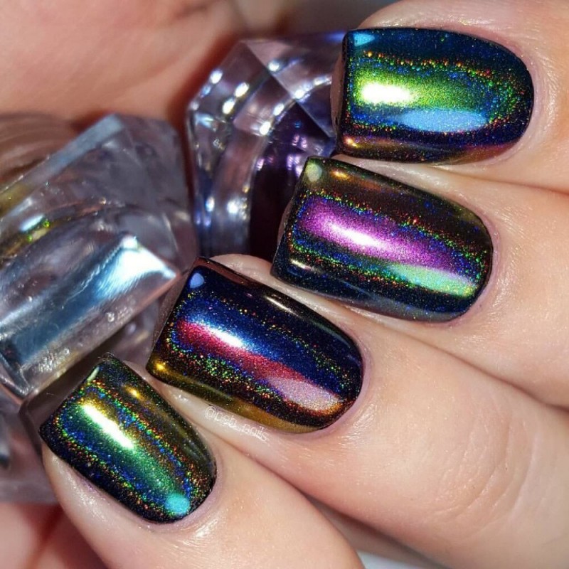 2. Zastosuj czarny kolor, utwardzaj, następnie drugą warstwę, utwardzaj. (ciemniejsza podstawa może pomóc uzyskać lepszy efekt kameleona)