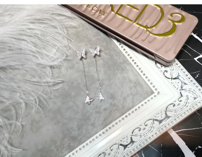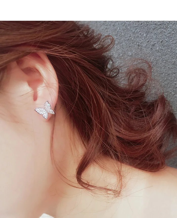 XIYANIKE 925 srebro motyl kryształowe kolczyki dla kobiet olśniewający Micro CZ cyrkon kolczyk prezent na boże narodzenie Bijoux