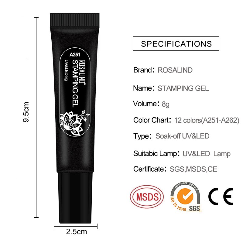 ROSALIND żel polski tłoczenie farby lakier hybrydowy Vernis Semi Permanent UV lakiery do paznokci Nail artystyczny Manicure płytka do stemplowania Specyfikacja: Marka: ROSALIND Ilość: 1 butelka Pojemność: ok. 8g Kolor: jak pokazuje zdjęcie Funkcja: Specjalny żel do paznokci do tłoczenia paznokci i drukowania kolorów. Może być zeskrobany raz za razem, bardziej odpowiedni dla początkujących. Nie ma wymogu prędkości roboczej, bardziej odpowiedni dla początkujących. Leczenie wymaga lampy UV. Sposób użycia: -1. Nałóż kolor bazowy na paznokieć za pomocą płaszcz podstawowy i utwardzaj. -2. Zastosuj żel do tłoczenia ROSALIND na płytkach tłoczących. -3. Użyj przezroczystego skrobaka do żelu. -4. Naciśnij stamper i podnieś wzór. -5. Przenieś na gwóźdź. -6. Zdejmij lateks paznokcia. -7. Nałóż warstwa wierzchnia i utwardzaj. -8. Skończony. Zawartość opakowania: 1 butelka 8g żel do dziurkowania