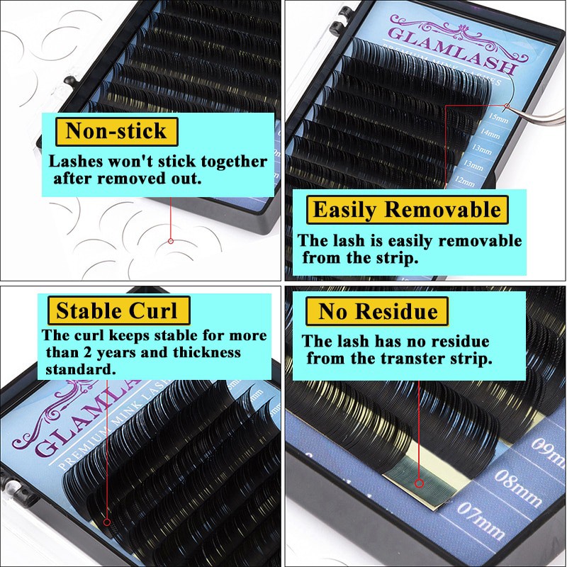 GLAMLASH Mix 7 ~ 15mm 16 linii handmade koreański pbt przedłużanie rzęs naturalne miękkie sztuczne rzęsy z norek rzęsy do przedłużania