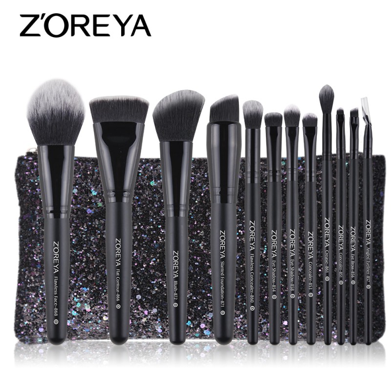 ZOREYA makijaż zestaw pędzli delikatne pędzle do makijażu z torbą Powder Foundation Contour i pędzle do makijażu oczu 2019 nowy Model