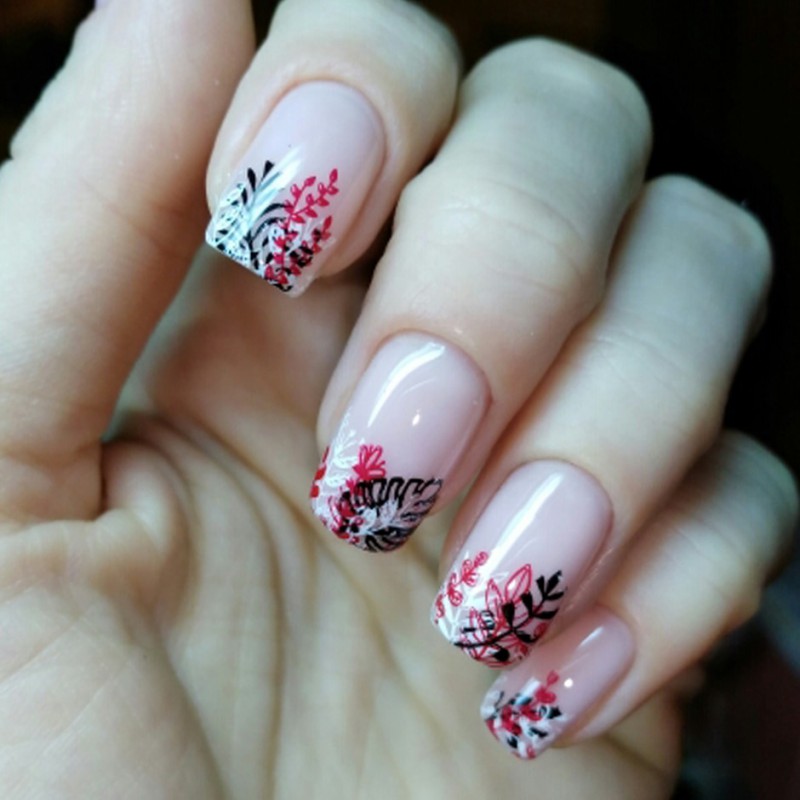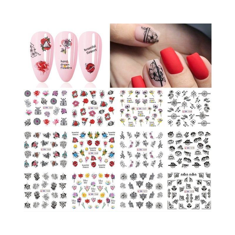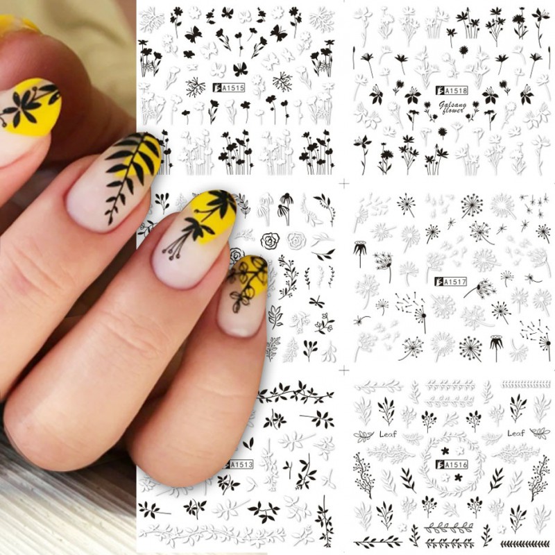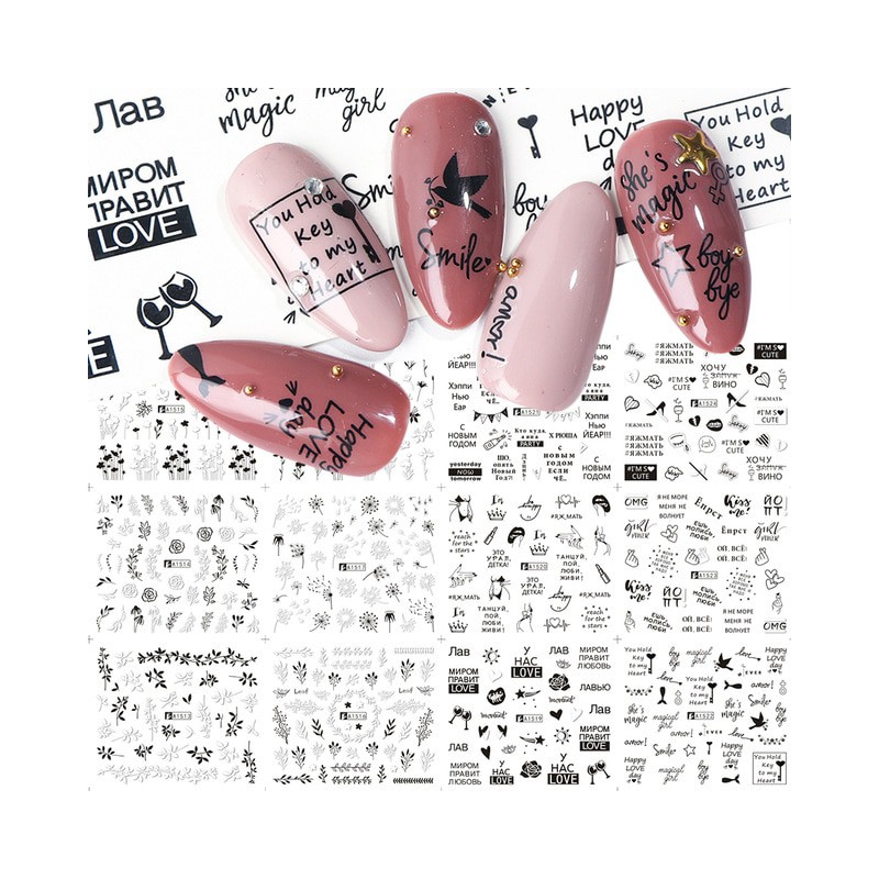 100% nowy i wysokiej jakości Do paznokci dekoracje artystyczne Łatwy do nakładania na naturalne lub sztuczne paznokcie Specyfikacja: Ilość: 1 arkusze Wzór: liść rosyjski list Kolor: czarny biały Typy: kwiaty do składania wzór w napisy Wzory: suwak do transferu wody Zawartość opakowania: 1 arkusz 12 wzorów woda paznokci naklejka artystyczna