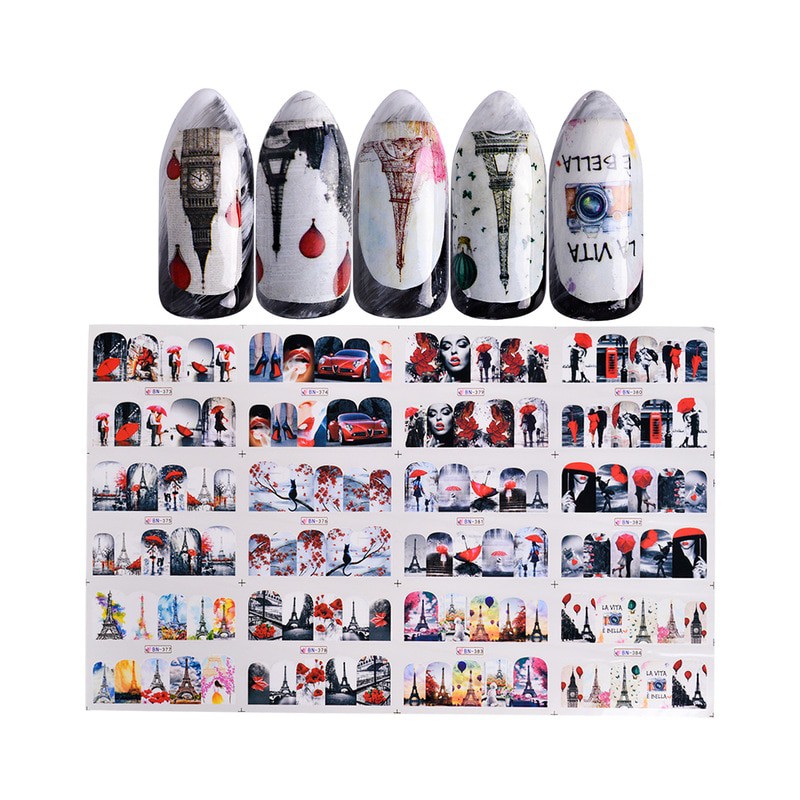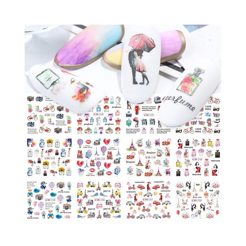 1. Przycinaj, czyść i poleruj paznokcie; Pomaluj kolor tła na paznokciach i wysusz. 2. Usuń folię produktu, wytnij wzór i zanurz go w wodzie 10-20 sekund. 3. Zwilż paznokcie, przyklej wzór w pozycji. 4. Podnieś wodę ręcznikiem papierowym i wysusz. 5. Cap z przezroczystym lakierem do paznokci i cios