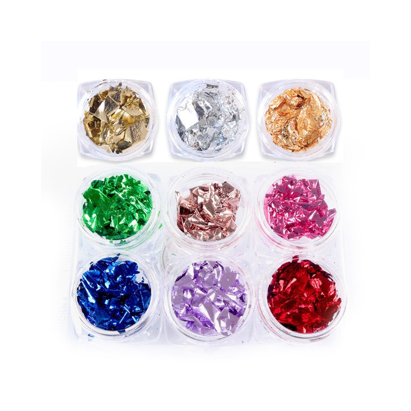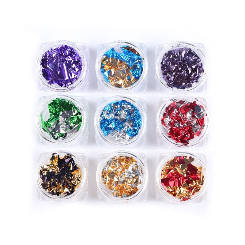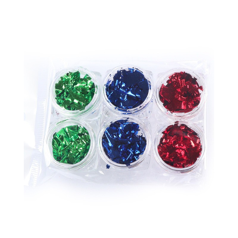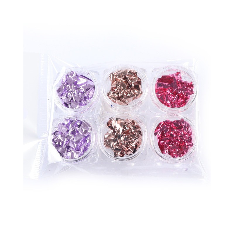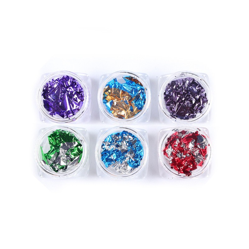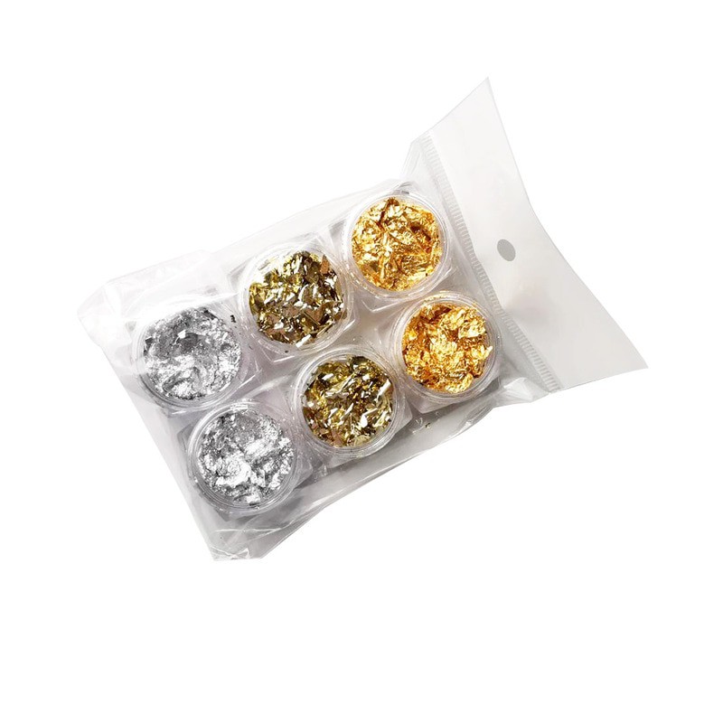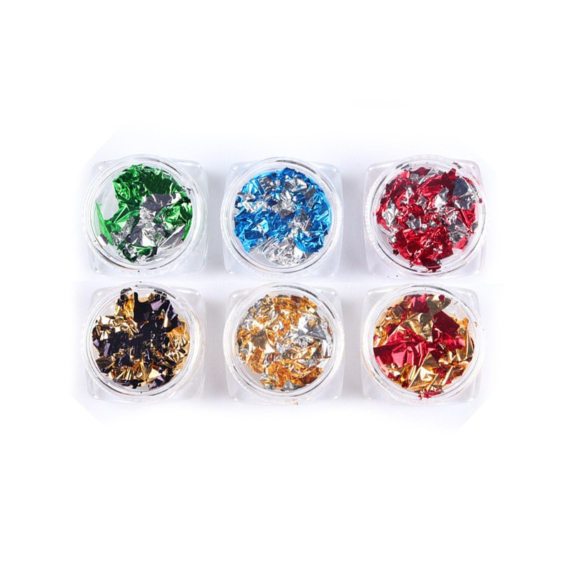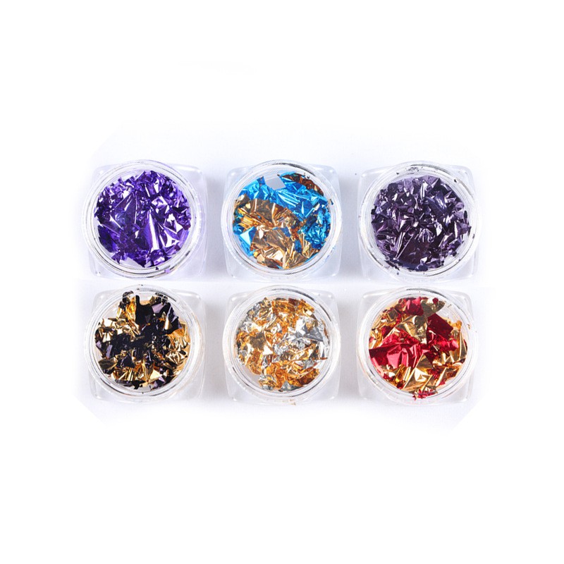 6 pudełek złote i srebrne na paznokcie Art folia papierowa nieregularne aluminiowe naklejki na paznokcie Manicure 3D brokatowy lakier żelowy ozdoba do paznokci