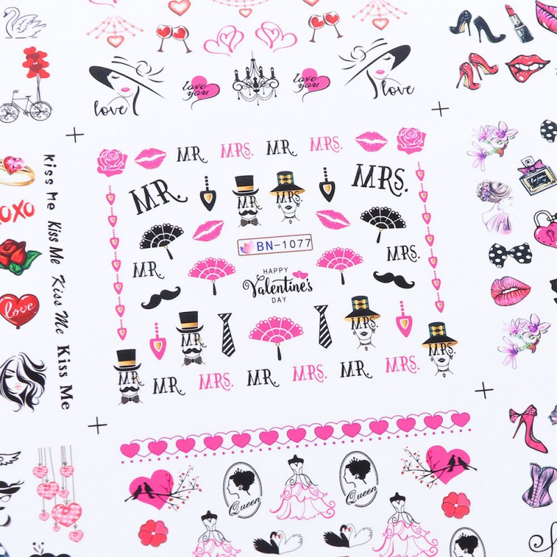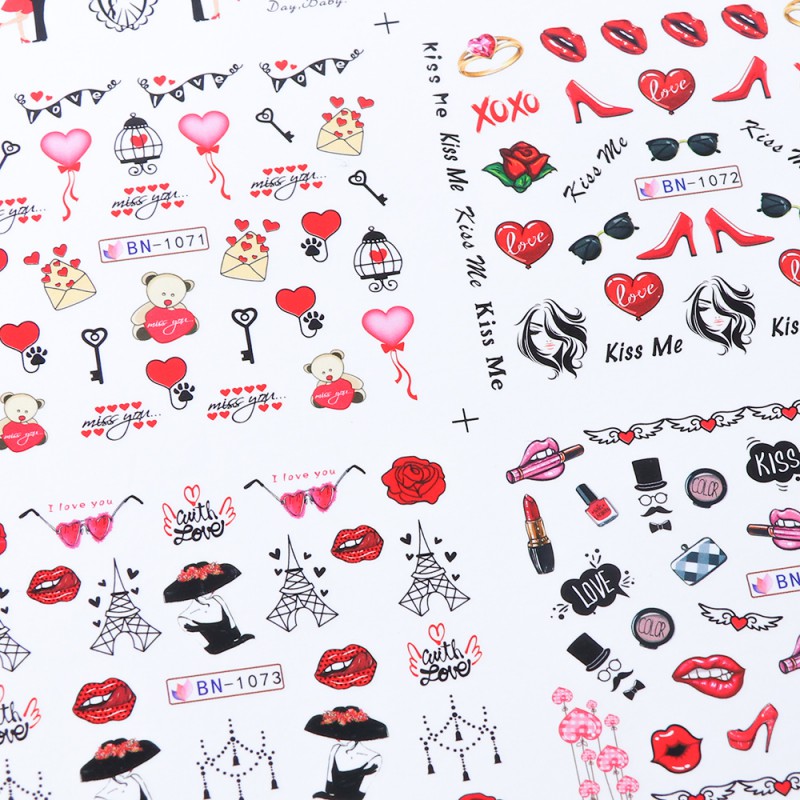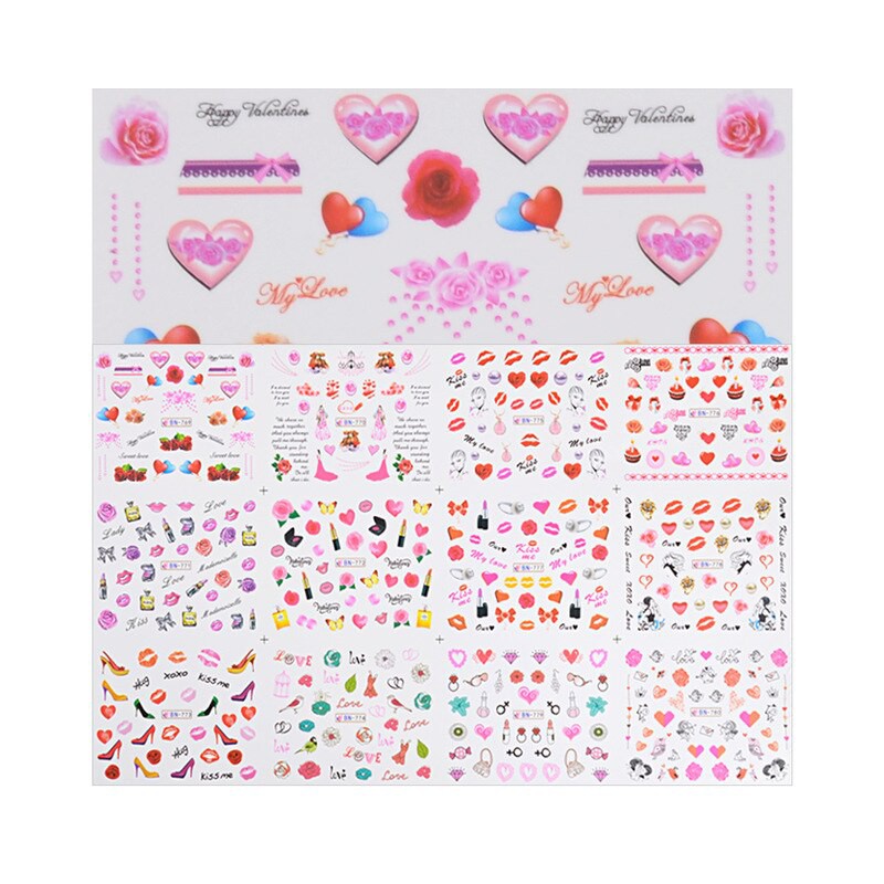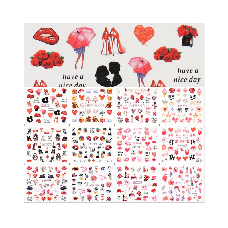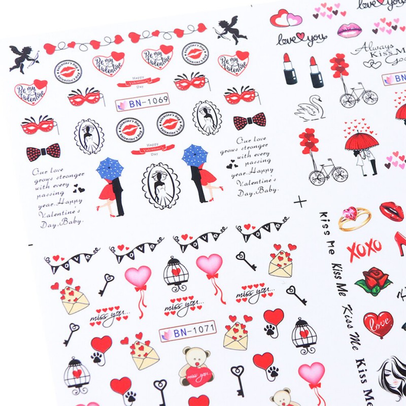 100% nowy przyjazd i wysoka jakość DIY Nail Art Beauty Naklejki do paznokci do transferu wody Rozmiar: 16x25.5cm Wzory: romantyczne walentynki naklejki na wodę suwaki naklejki na paznokcie dekoracje artystyczne Sexy Lips Flower Heart Tattoo Wraps Pakowanie: 12 wzorów/arkusz woda transfer naklejki do paznokci