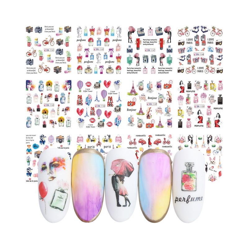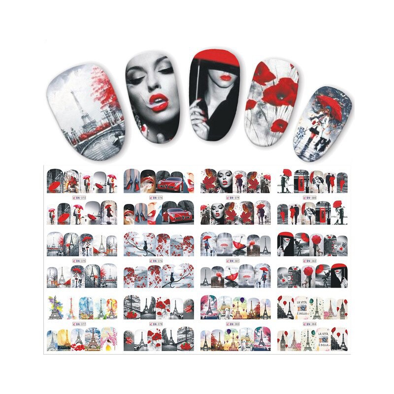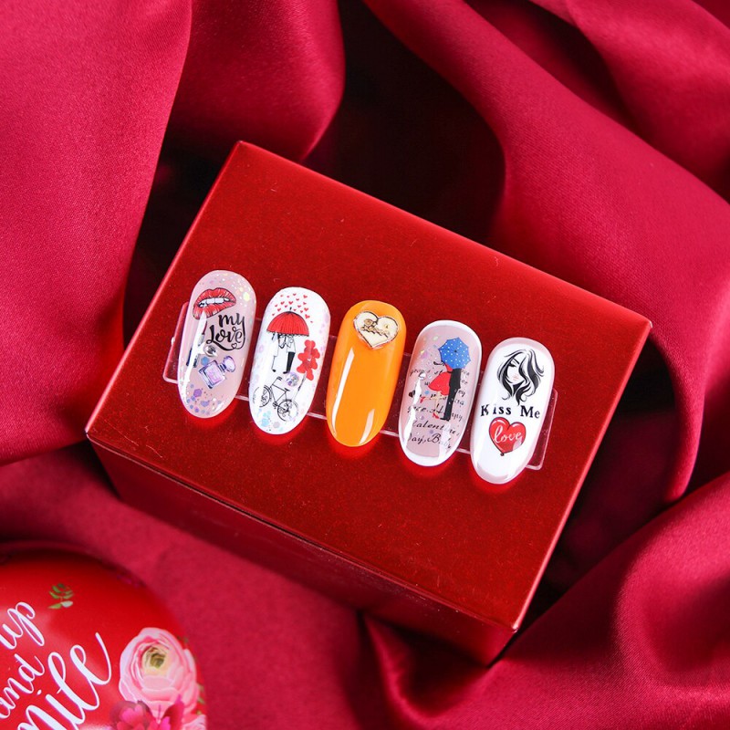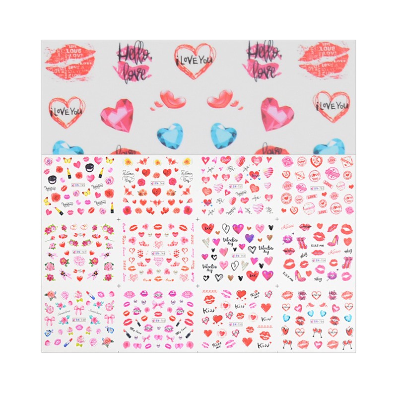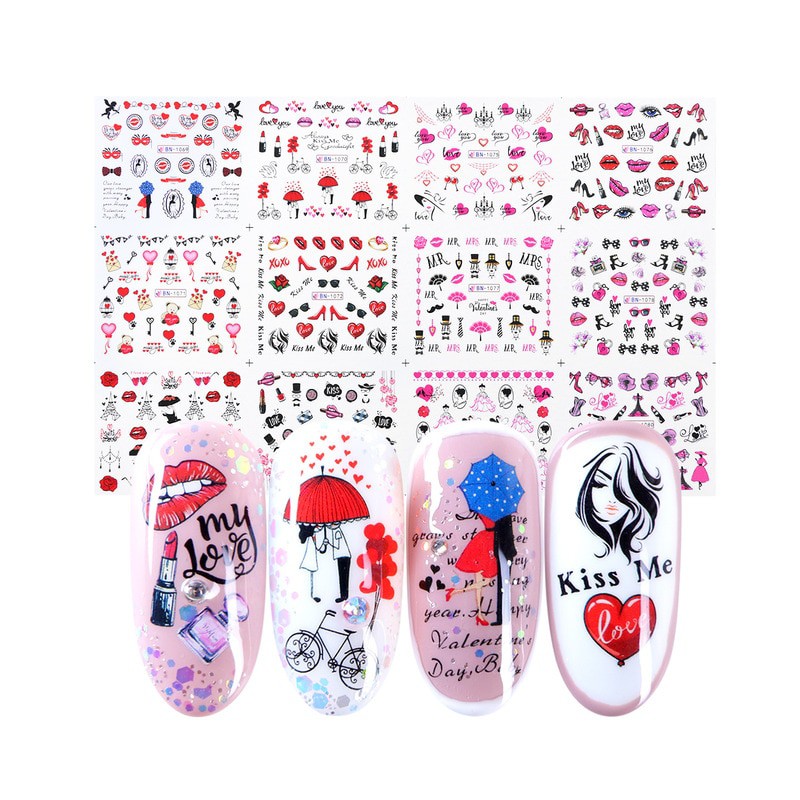 100% nowy przyjazd i wysoka jakość DIY Nail Art Beauty Naklejki do paznokci do transferu wody Rozmiar: 16x25.5cm Wzory: romantyczne walentynki naklejki na wodę suwaki naklejki na paznokcie dekoracje artystyczne Sexy Lips Flower Heart Tattoo Wraps Pakowanie: 12 wzorów/arkusz woda transfer naklejki do paznokci