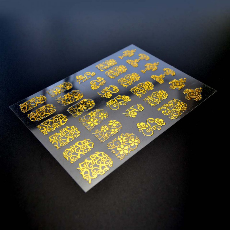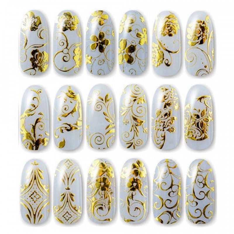 108 sztuk 3D naklejki na paznokcie kwiat projekt paznokci naklejki do paznokci Manicure złoty żel Uv folia polski paski naklejki ZJ1106