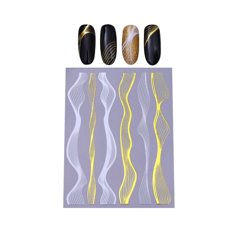 1 arkusz 3D naklejka do paznokci złote srebrne linie