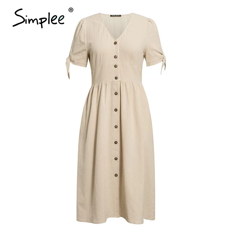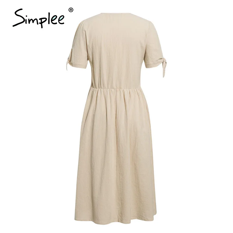 Bawełna/guziki/szarfy/krótki rękaw/Casual/sukienka