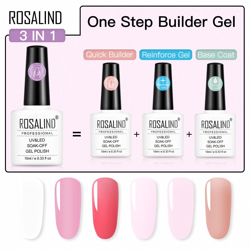Marka: ROSALIND nazwa: One Step żel odbudowujący objętość: 10 ml kolor: 6 kolorów cecha: płaszcz podstawowy, żel wzmacniający i Quick Builder 3 w 1 uwaga: nie ma funkcji warstwa wierzchnia.