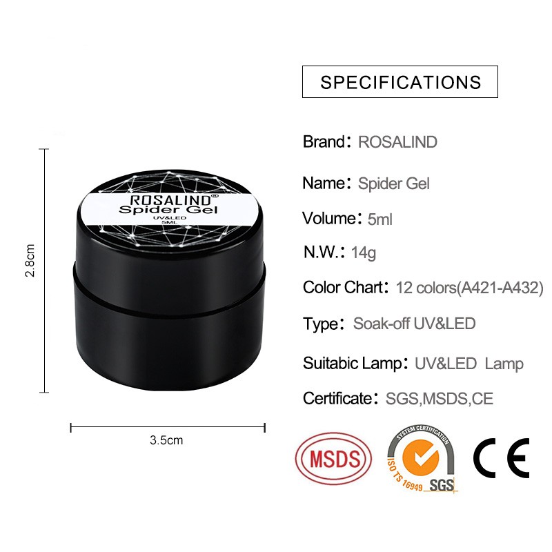 Do paznokci ROSALIND Art 5 ml pająk żel do samodzielnego zdobienia paznokci punkt do linii do rysowania i malowania dekoracji ciągnięcie jedwabny pająk lakier do paznokci